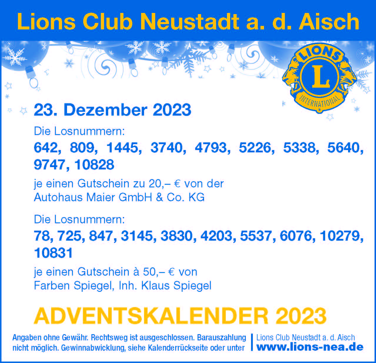 Presseberichte und News - Lionsclub Neustadt a. d. Aisch